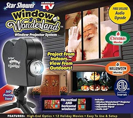 Window wonderland deluxe indoor projector with 6 bonus videos holiday decorating is hard work what with fighting cold weather dodging thorny bushes and hanging the same boring stuff.