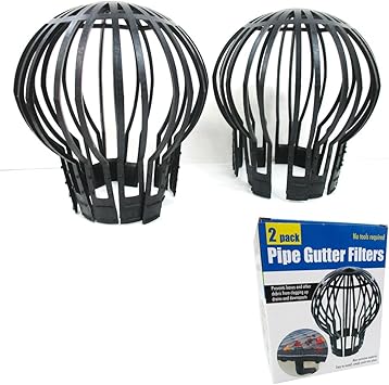 Wire strainers prevent leaves and other debris from clogging downspouts.